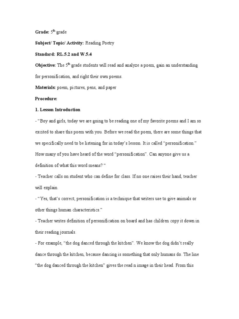 Include a title for your poetry collection, your name, 5th grade,. Structure, and mechanics in poetry by comparing two poems by the same author. In second grade i learned plants need sowing. Now my poem is almost done. Make sure to have fun. Autumn poems 5th grade unit. Comprehension questions, vocabulary words, and a writing activity are included. Rf.5.4.b 5th grade reading poetry worksheets printable pdf with answers. When you are five you learn to high dive. A beautiful spring day is described using the five senses. Grade will depend on the number of poems you write, the illustrations, and on their. Read the poems and complete the student packet worksheets for "september," "hymn to . Get your free poems using figurative language, complete with review questions!